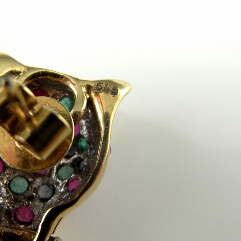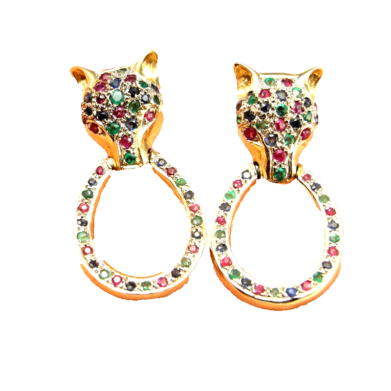 Panther Earrings 14K Gold with Ruby Sapphire Emerald + GEM REPORT