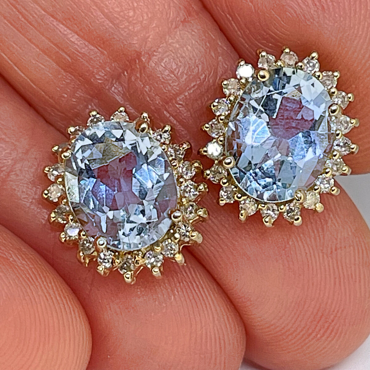 Natural Aquamarine Diamond Earrings 14K Gold and similar items