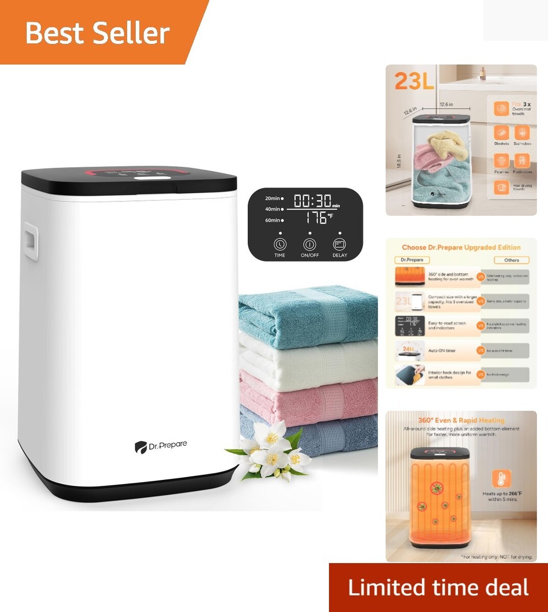 Deluxe LED Towel Warmer: 23L Capacity with Auto Shut-Off & Child Safety