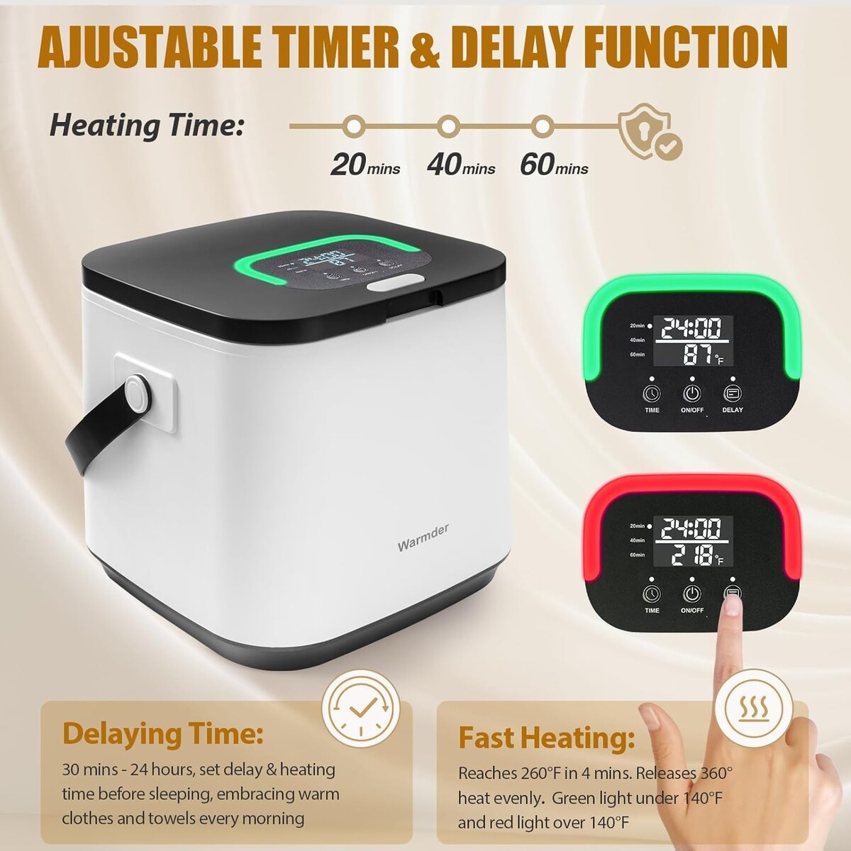 Optimal Temperature Towel Warmer for Blankets Bathrobes - Child Safe Design