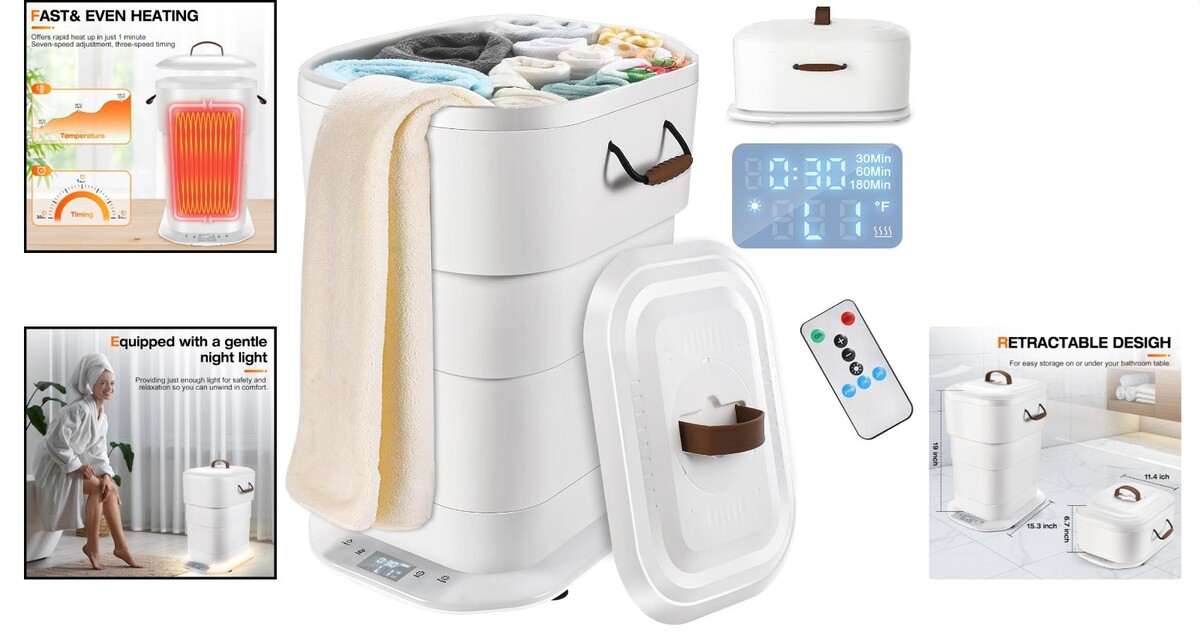 Compact 27L Towel Warmer for Bathroom - LCD Display Auto Shut-Off Safety
