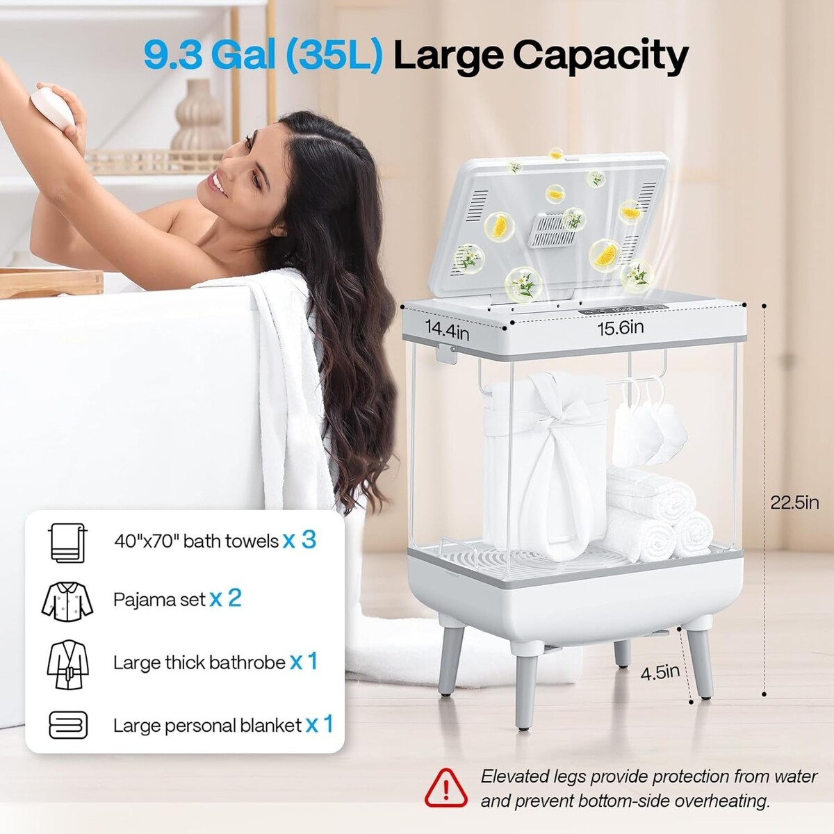 The ultimate luxury for your home, our Portable 35L Towel Warmer transforms mundane moments into indulgent experiences. With its spacious capacity and advanced features, it answers the call for warmth and comfort at your convenience. Whether you're treating yourself or bestowing a heartfelt gift, this towel warmer is more than just a practical appliance; it?s an invitation to relish every moment with cozy, heated towels and comforting scents. Experience the spa-like luxury in the comfort of your home?order yours today!