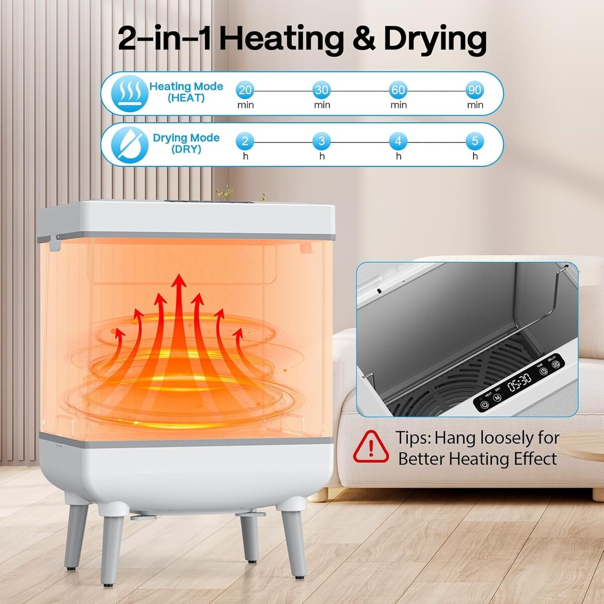 Features: Dry Heat,Heating Drying Modes,Delay Timer,Foldable Design,Built-in Hanging Hook,Bottom Airflow Heating,Aromatherapy Discs Holder,Elevated Legs