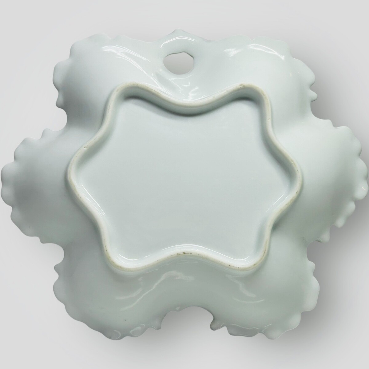 ? Accents: Six gold-gilt scalloped "cut-out" sections along the rim.