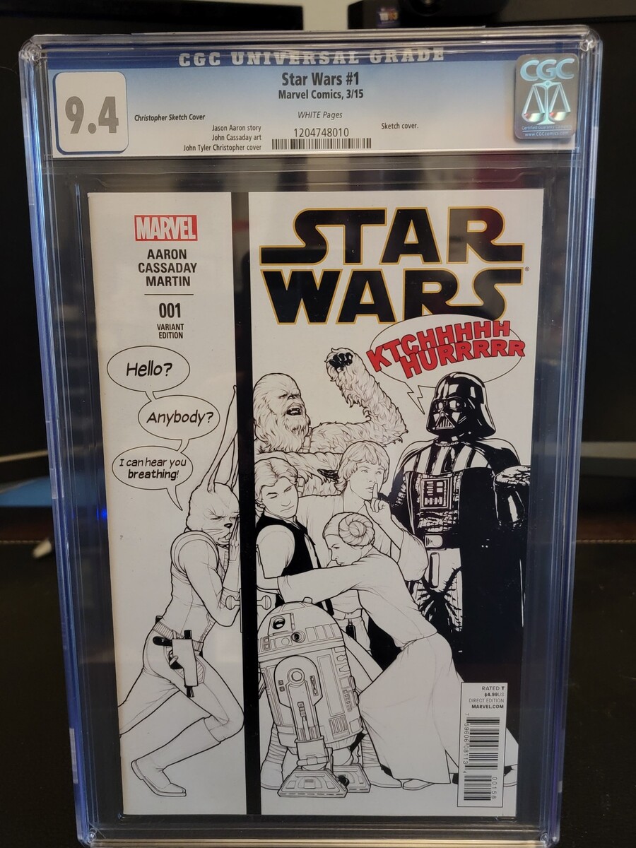 Thanks for checking out my listing! Up for grabs we have a Star Wars #1 J T Christopher Party Sketch B W Variant slabbed and graded CBCS 9.4. Combined shipping is available for multiple items. If you have any questions, just ask!