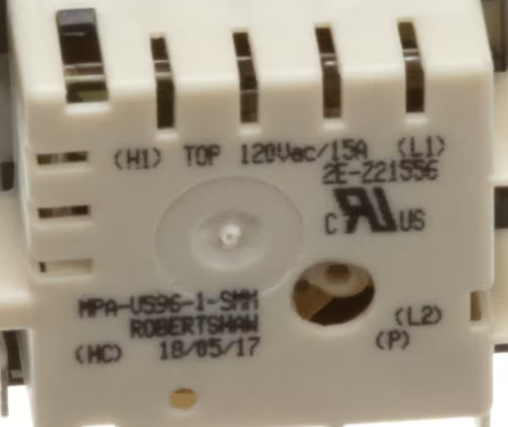 Wells MPA-US96-1-SMM, 2E-Z21556 Infinite Switch, 120V, 15A, Hotplates