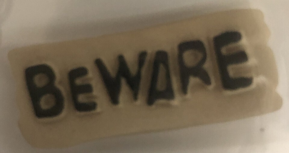 Beware sign: 1-5/8" wide x 3/4" long x 1/4" deep.