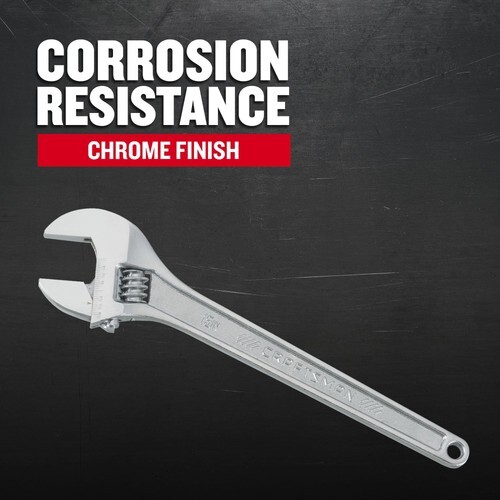 CORROSION RESISTANCE: Adjustable wrench has a chrome finish for corrosion resistance