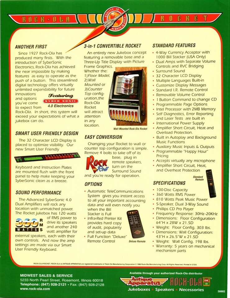 RockOla Rocket Jukebox FLYER 1998 Unused and similar items