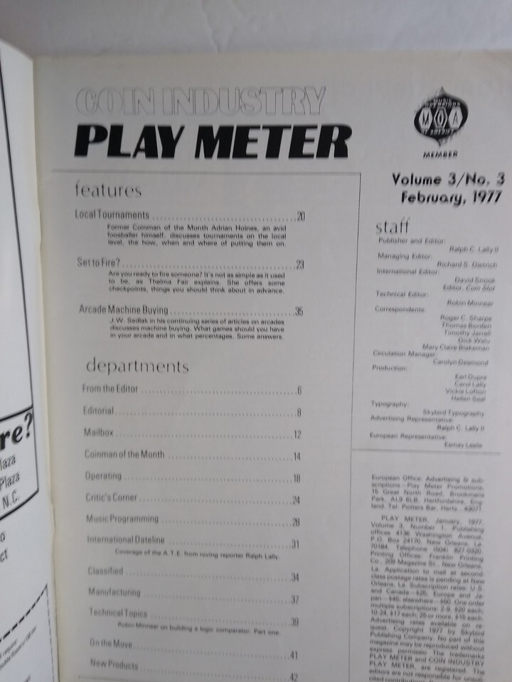 This listing includes the single Coin Industry Play Meter magazine, Volume 3 No. 3, from February 1977, as pictured.