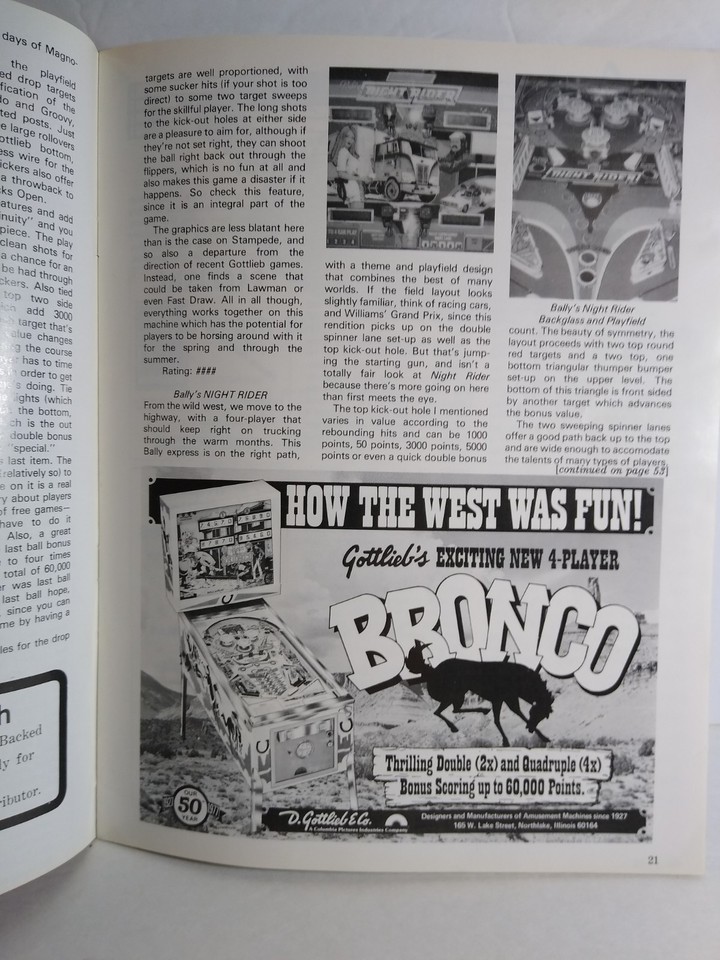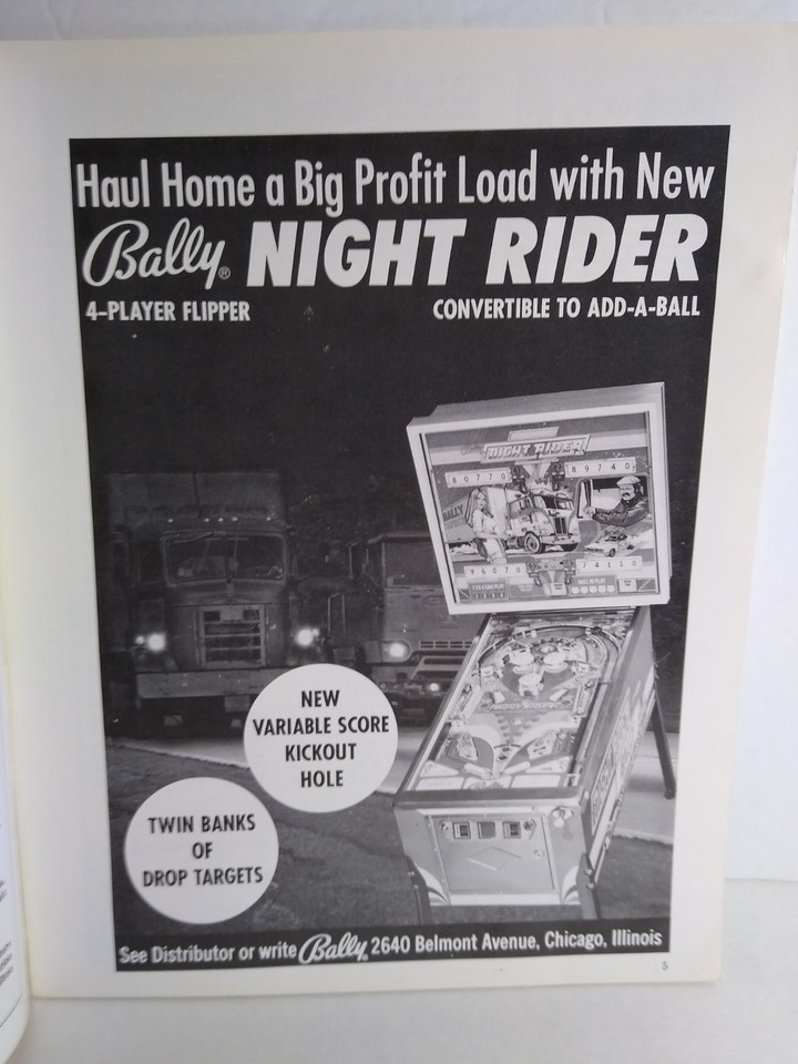 Features: Advertisements for Atari, Bally, Midway, Gottlieb, Rock-Ola