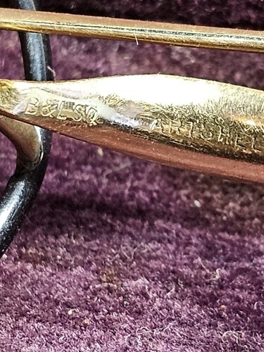 Antique Bausch Lomb SQ ARTSHEL eyeglasses, dating from the 1910s?1930s. These are marked B L SQ ARTSHEL on the interior bridge, denoting Standard Quality (1/10 12K gold-filled) frames from Bausch Lomb?s ARTSHEL line.