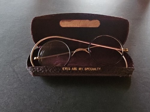 UP FOR SALE: Bausch Lomb SQ ARTSHEL eyeglasses from the 1910s?1930s, crafted in 1/10 12K gold-filled Standard Quality frames. These smaller wire-rim spectacles feature the hard-to-find ARTSHEL marking and include the original period case ? a early optical collectible.