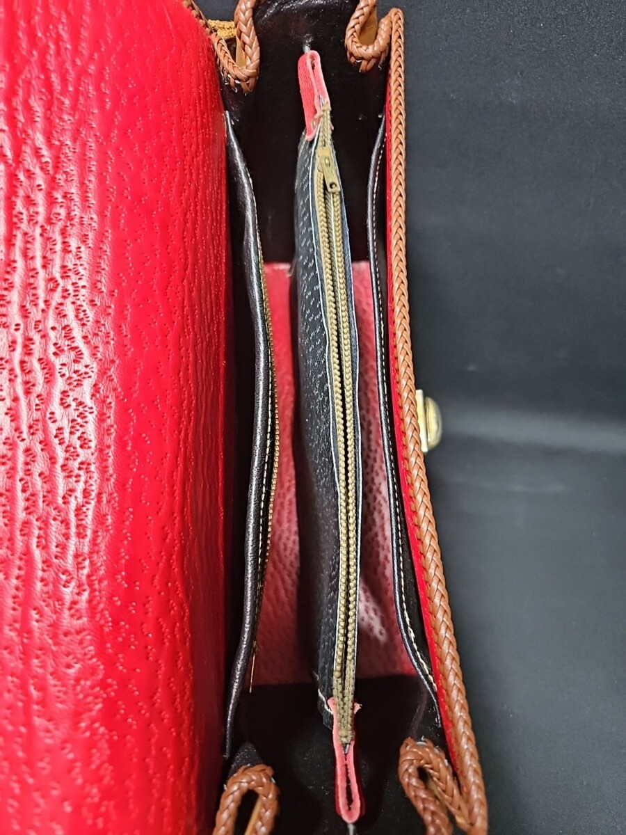 Red leather-lined interior with multiple compartments