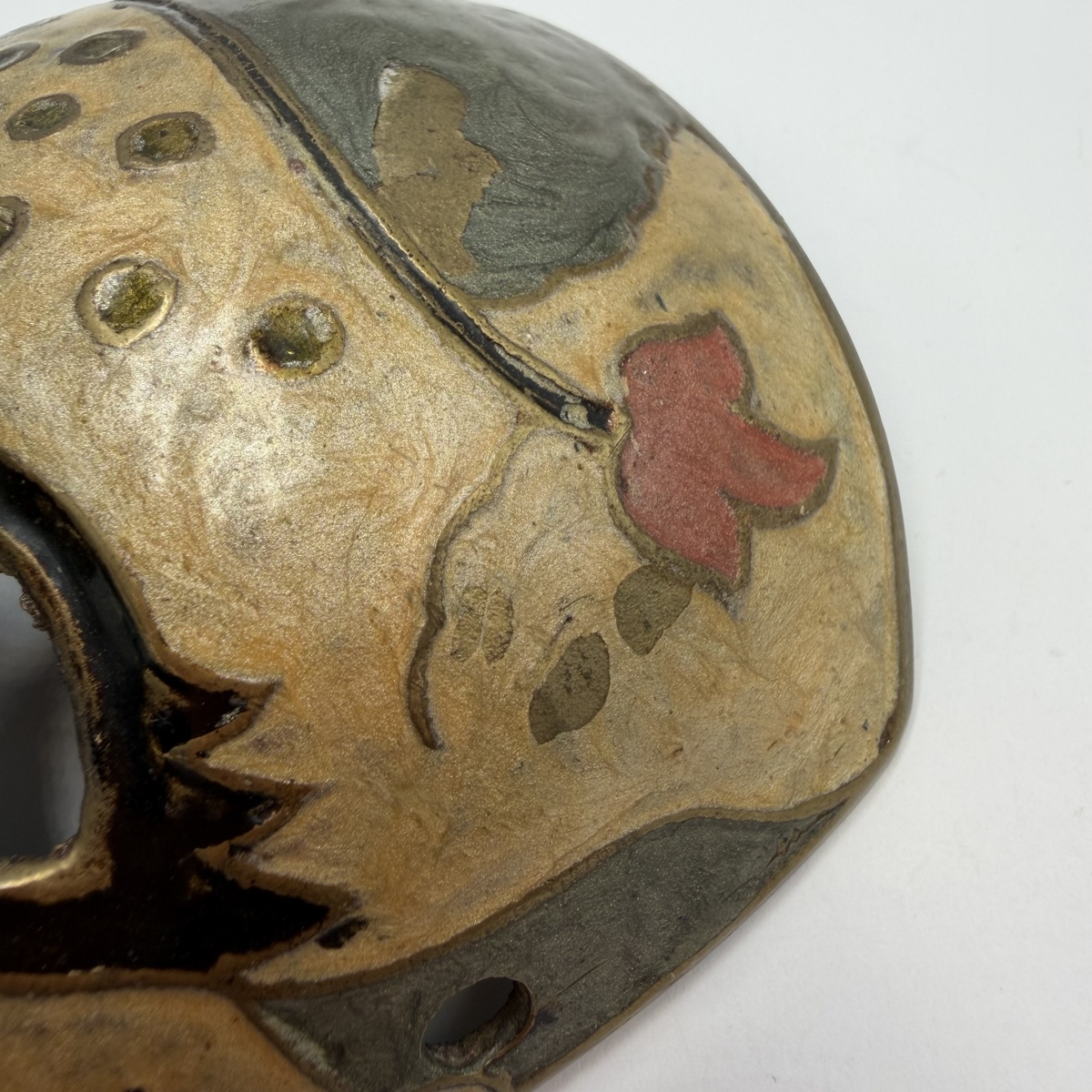 Vintage Venetian Bronze Enamel Mask Wall Decor | Hand Painted Masquerade Mask