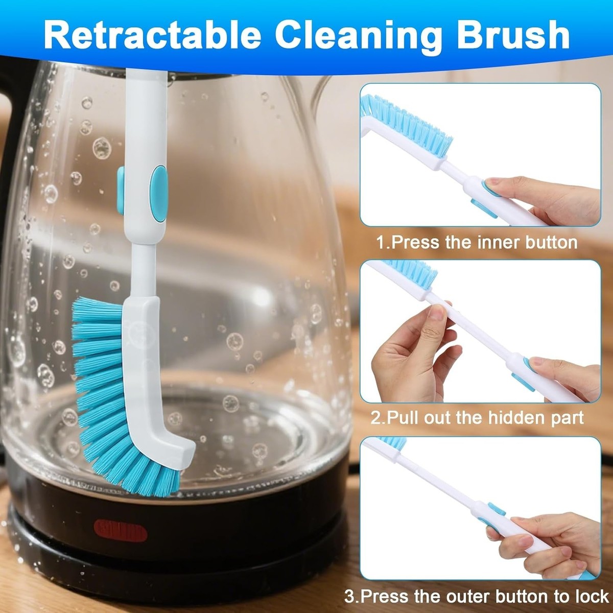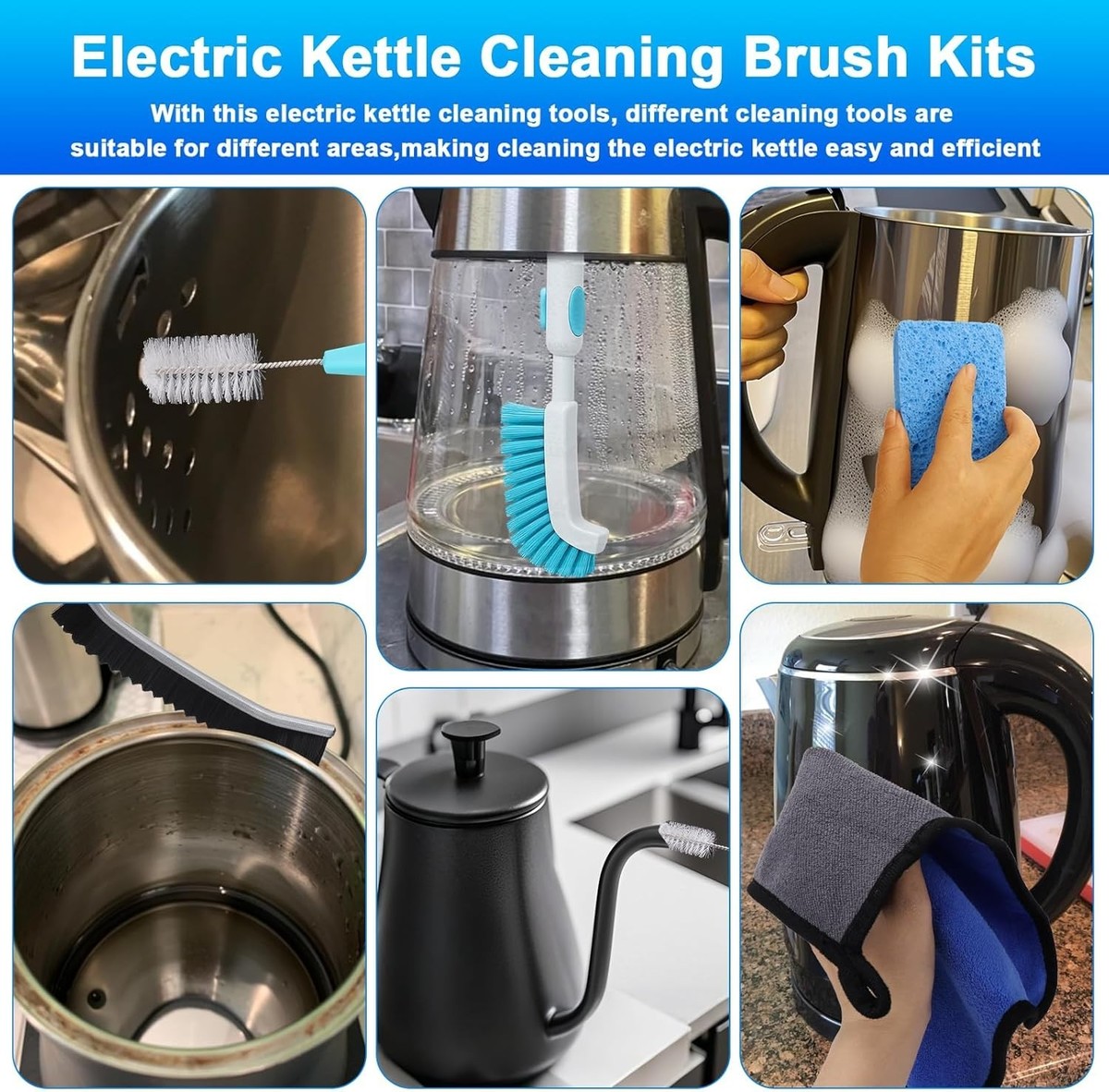 Features: Easy Clean,Cleaning Brush Set,Retractable Cleaning Brush,Short Straw Brush,Long Straw Brush,Crevice Cleaning Brush,Cleaning Sponge,Cleaning Cloth,Efficient Cleaning,Time-Saving,Deep Cleaning Kit,Professional Cleaning Tools,Durable Materials,Improved Safety,Kettle Maintenance,Extends Kettle Life,Removes Scale and Stains