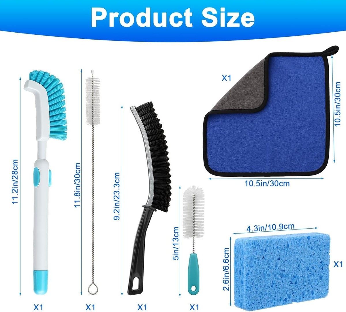 Includes one cleaning sponge, one cleaning cloth, one retractable cleaning brush, one long straw brush, one short straw brush, and one gap brush.