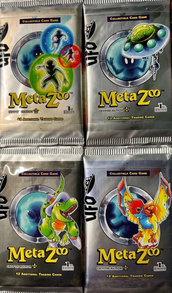 The product is for 1 Metazoo UFO Booster Pack containing collectible trading cards from the MetaZoo CCG. The pack is from the Cryptid Nation: First Edition set, providing players with additional cards to enhance their gameplay experience. Each booster pack offers a chance to acquire new and exciting cards to add to your collection, making it a valuable addition for fans and players of the MetaZoo CCG. There are 4 different pack designs.