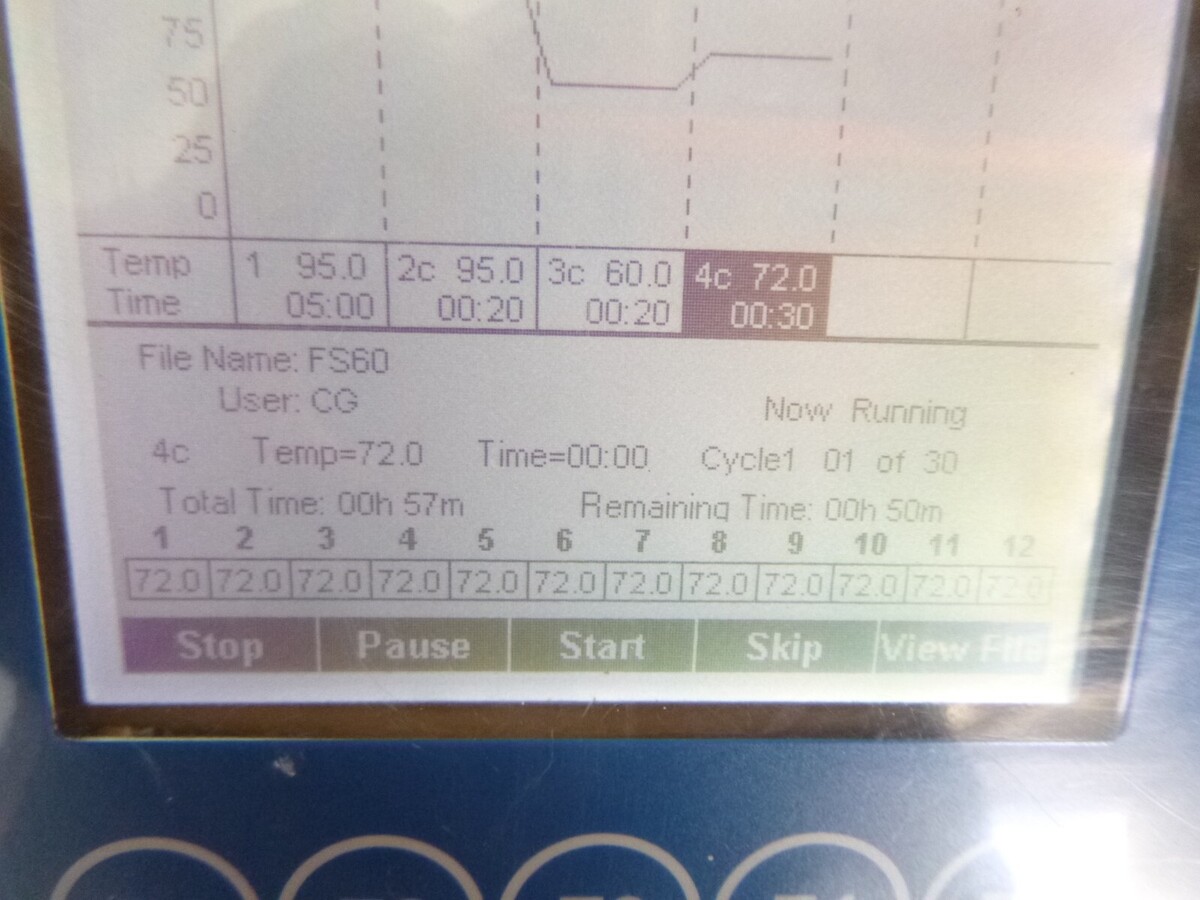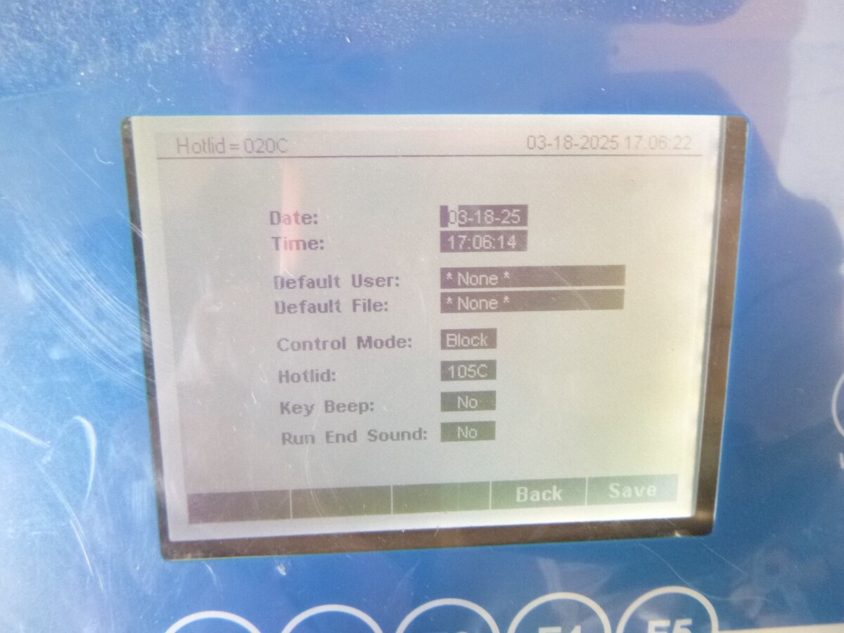This thermal cycler powers on, heats up, and I can get it to advance through several screens on the display. This is as far as I have been able to test it. It has some scratches and scuffs but is overall in good cosmetic condition.