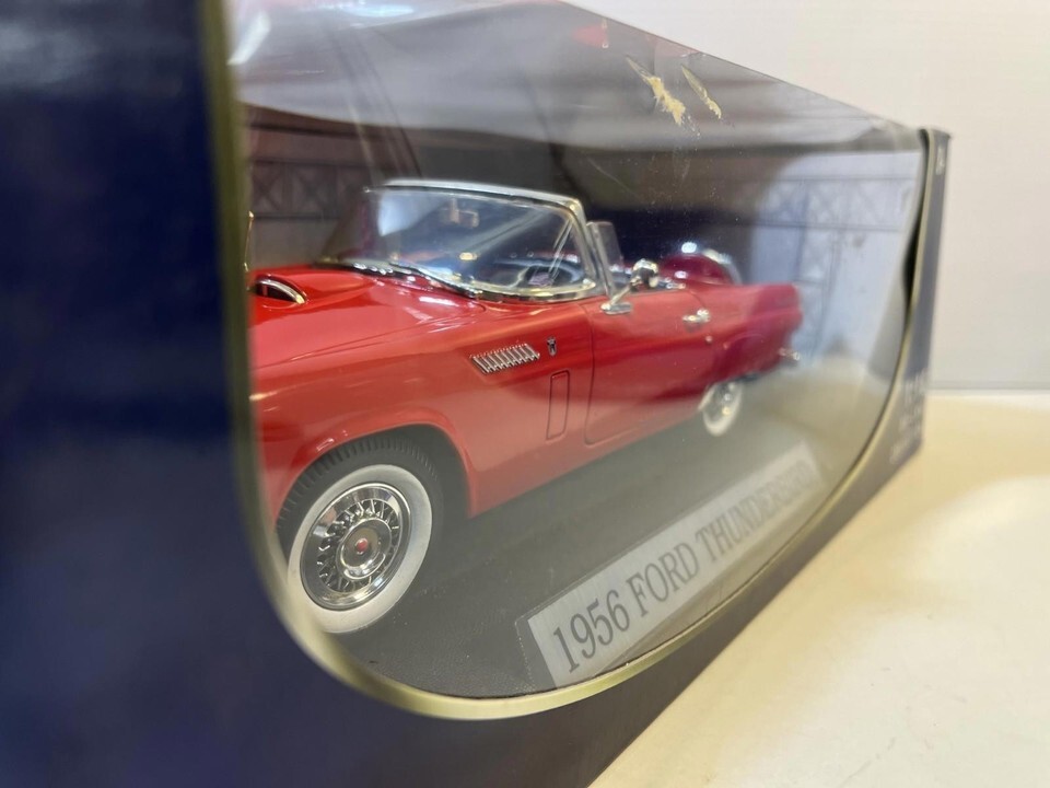1956 Ford T-Bird Diecast Model Car: 1/18 Scale By Motor Max. This Diecast car checks all the boxes for a reasonably priced rendition of the classic die cast 1956 Ford T-Bird. This is a used car and may have paint imperfections and / or other defects but is priced accordingly. Please review pictures carefully before purchasing.