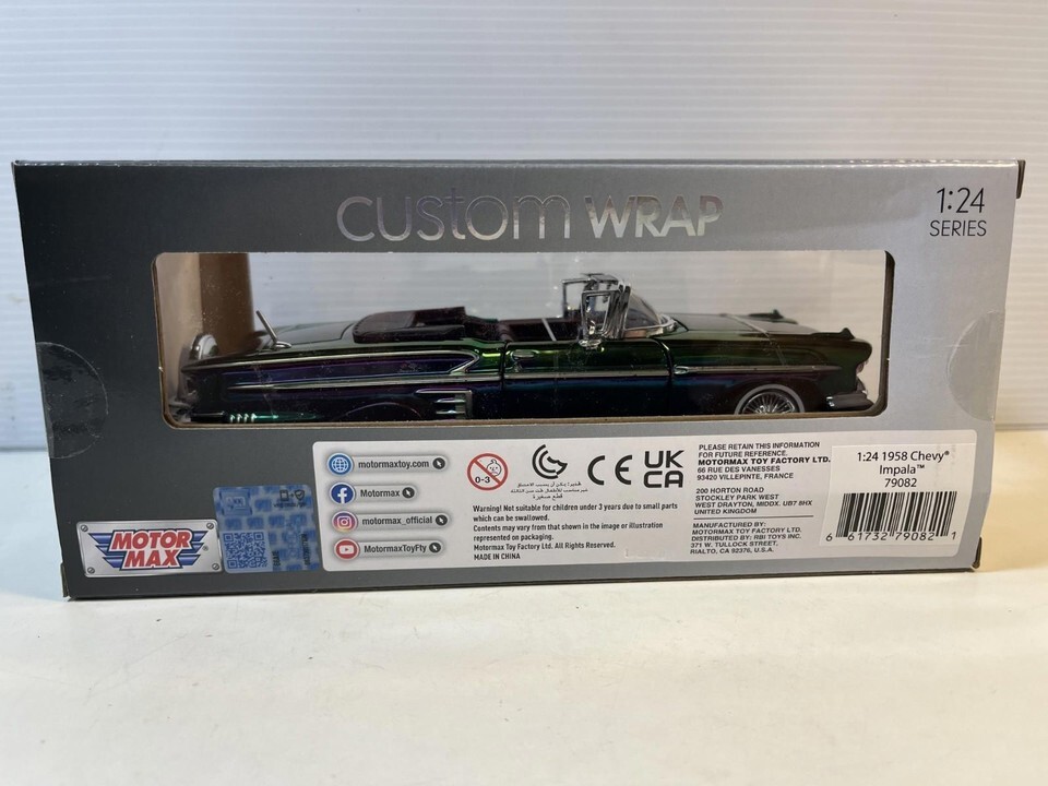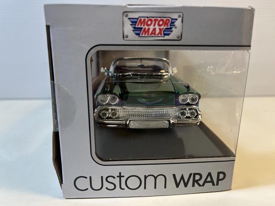 1958 Chevy Impala Chrome Wrap Diecast Model Car: 1/24 Scale, New In the Box By Motor Max. This Diecast car checks all the boxes for a reasonably priced rendition of the classic die cast 1958 Chevy Impala.