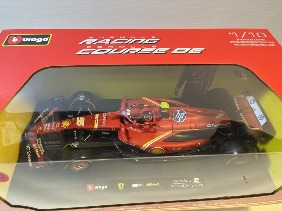Ferrari SF-24 Diecast Model Car: 1/18 Scale By Bburago. This Diecast car checks all the boxes for a reasonably priced rendition of the classic die cast Ferrari SF-24. This is a used car. Please review pictures carefully before purchasing.