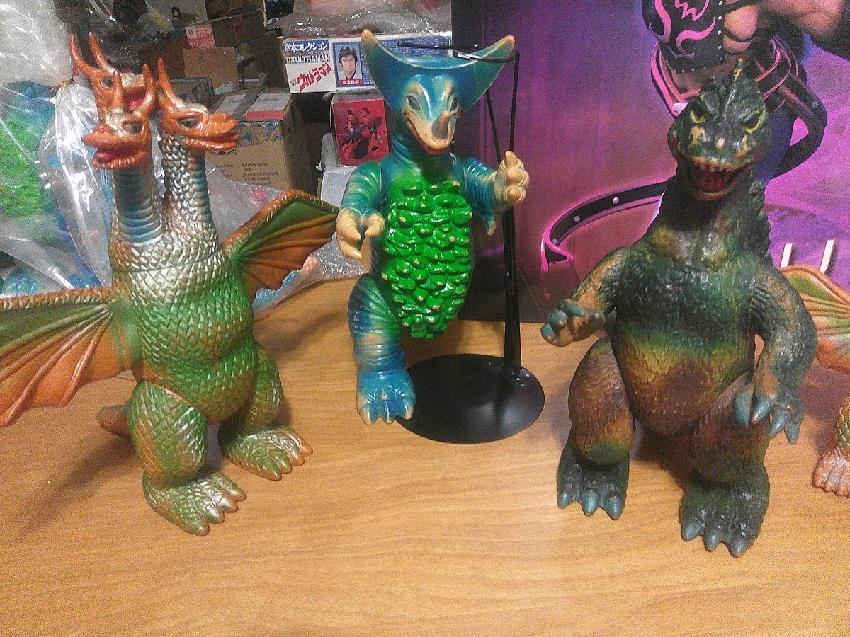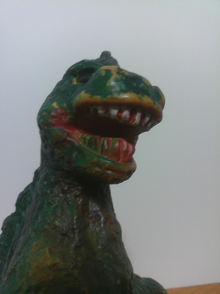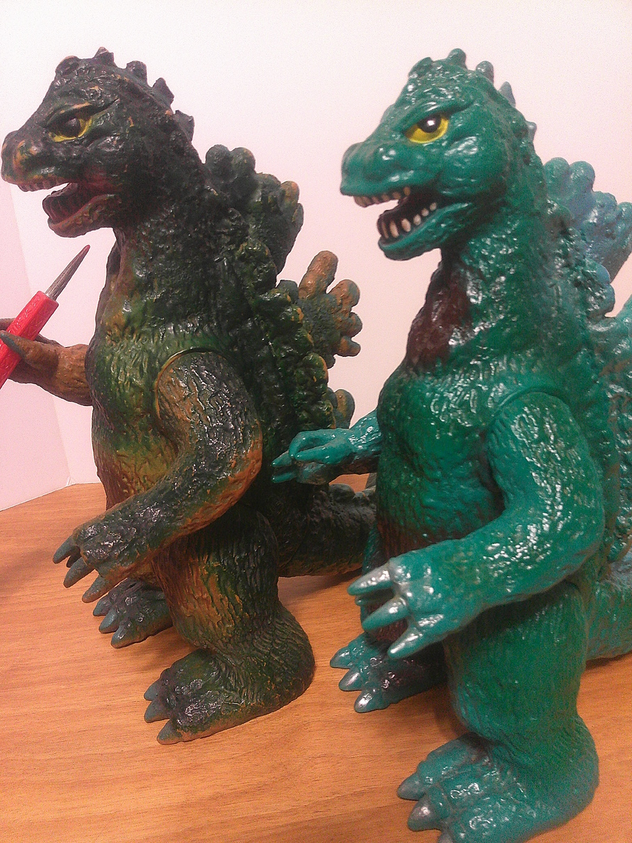 This is a cool Vintage Bullmark Godzilla Vinyl. Made by Bullmark in 1970. 4 color types were made. All used brown vinyl. This one appears to be of the Brown lower with Green top from the front.