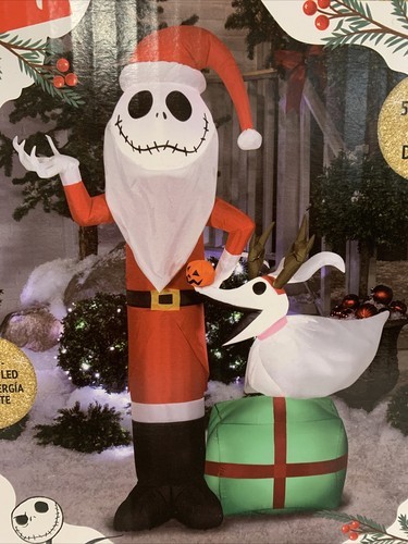 Bring the magic of Disney's The Nightmare Before Christmas to your lawn this holiday season with this 5-foot inflatable featuring Santa Jack Skellington and his faithful ghost dog Zero. This large, corded inflatable is perfect for both indoor and outdoor use and is made of durable nylon material.