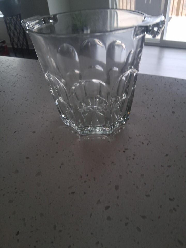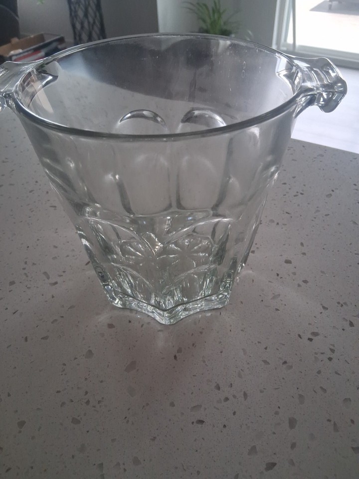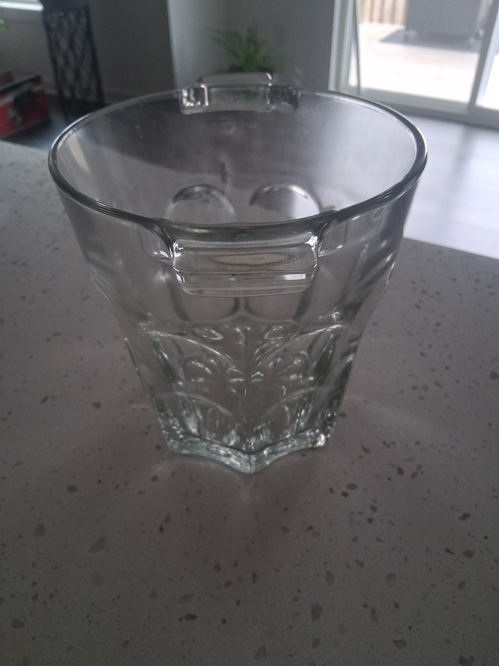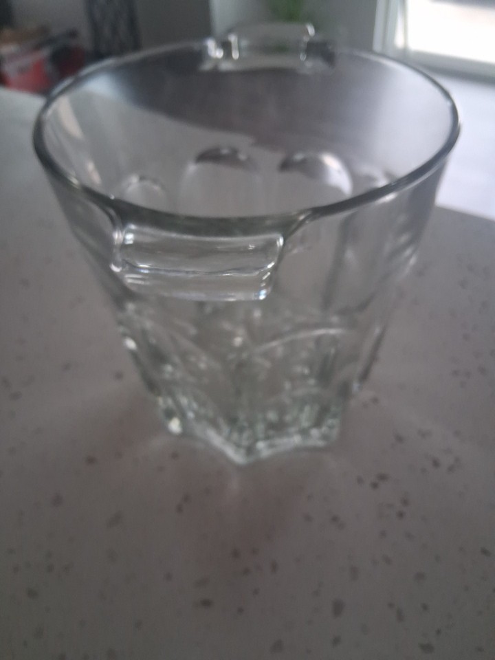 VNTG Crystal Glass Ice Bucket with Handles Clear Glass Ice Bucket 6.5 x 6 In