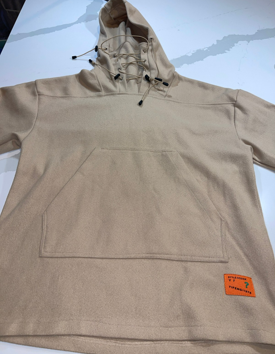 STYLE DESIGN YIFENG/1978 LACE UP FLEECE PULLOVER BOHO HOODIE MEN'S MEDIUM