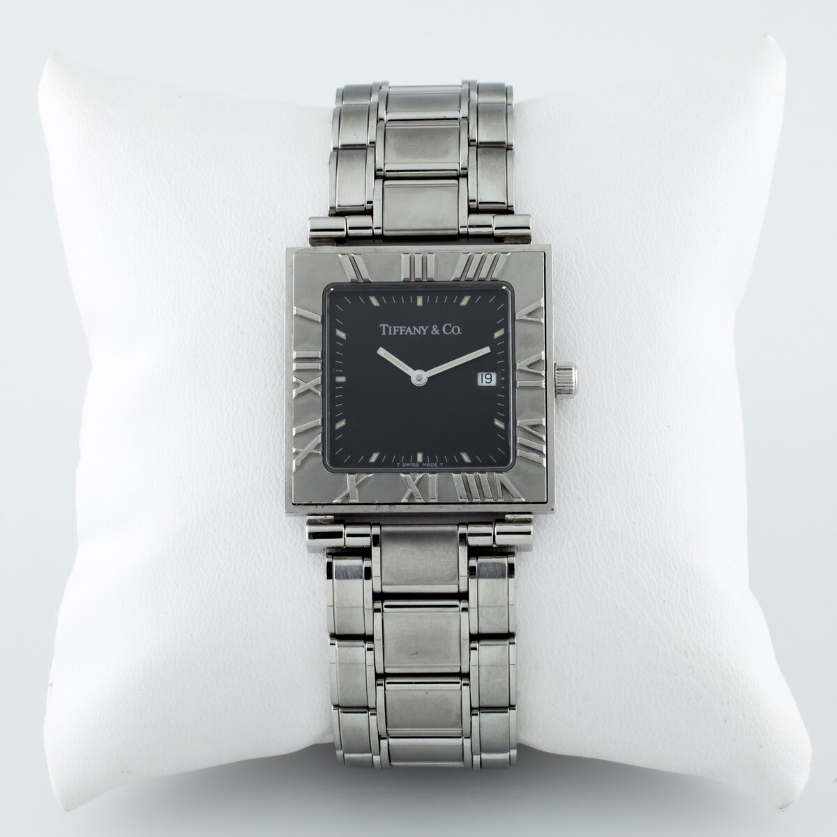 Tiffany & Co. Atlas Quartz Square Watch Stainless Steel w/ Date