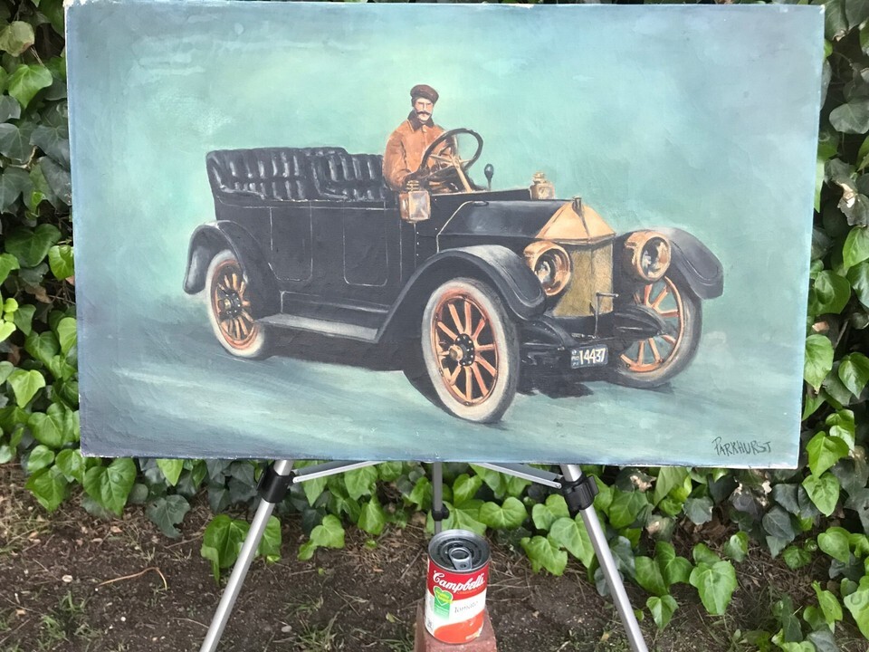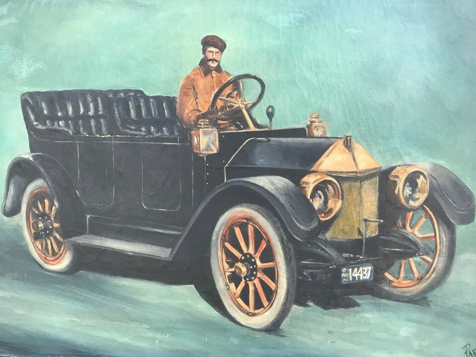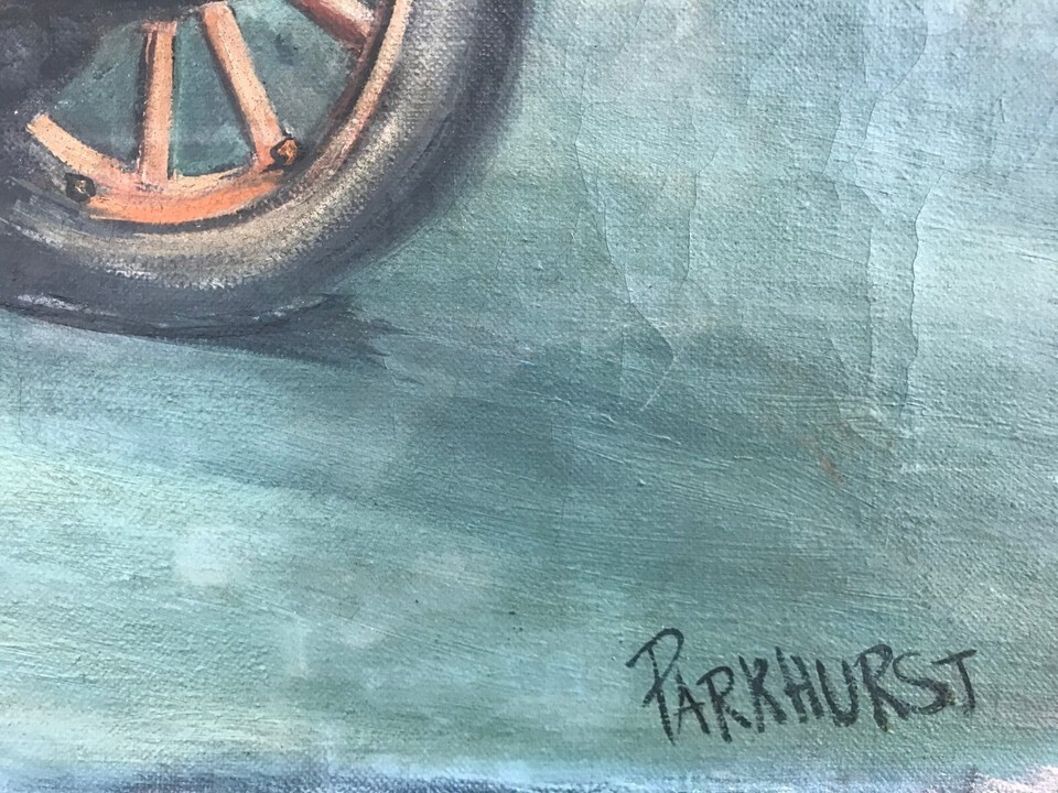 VIOLET PARKHURST Original LOUIS CHEVROLET 1911 RACE CAR AT INDY OIL ON CANVAS