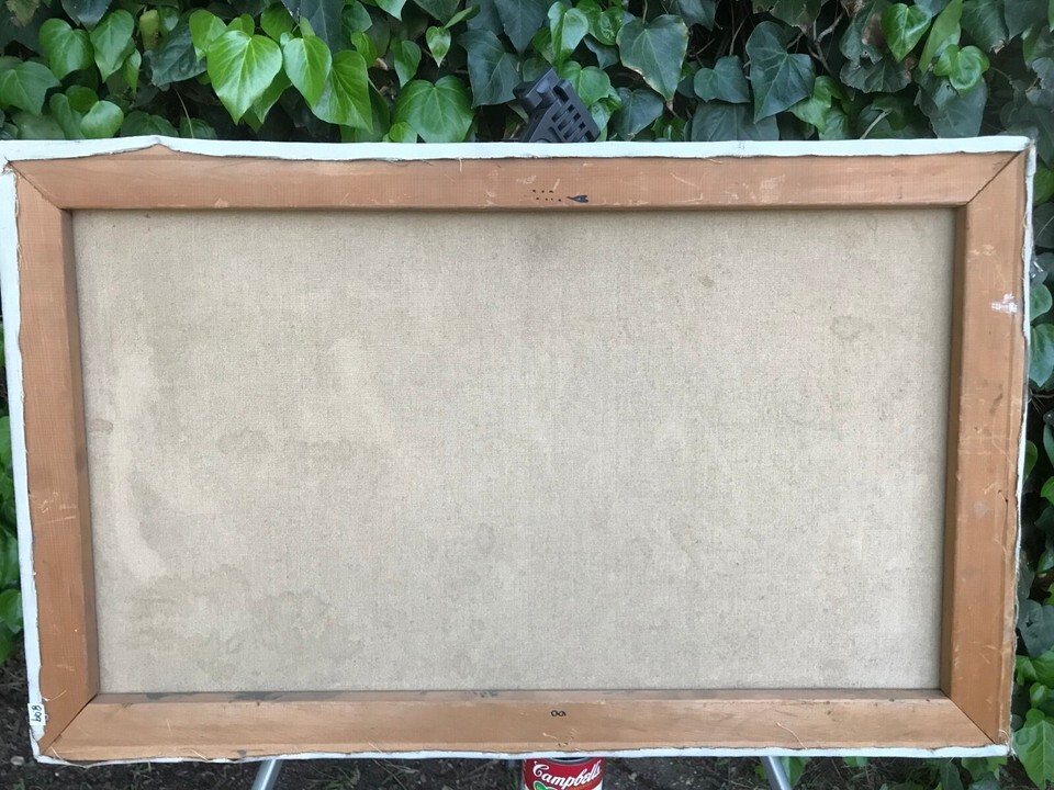 Canvas has a few tiny chips mild craquelure due to age, but still very presentable. See photos.