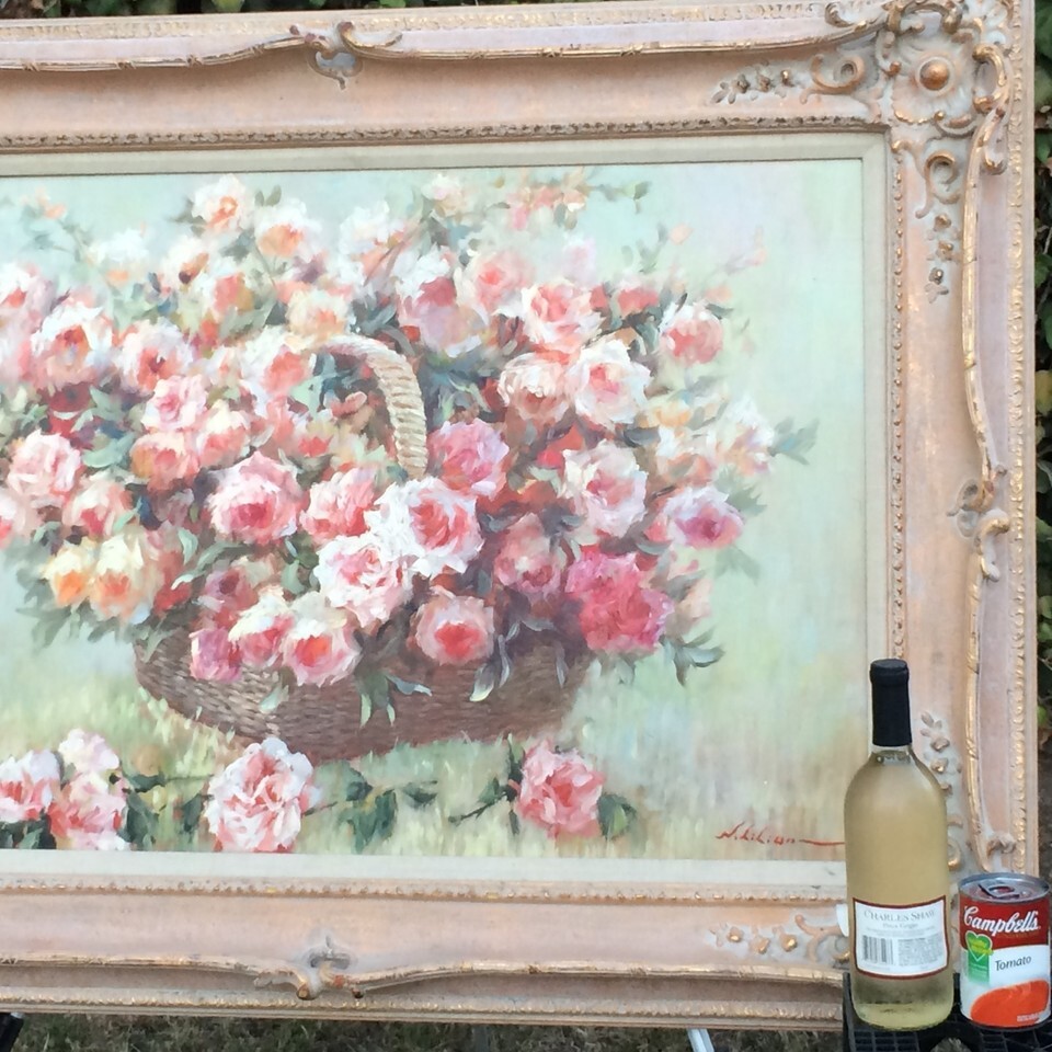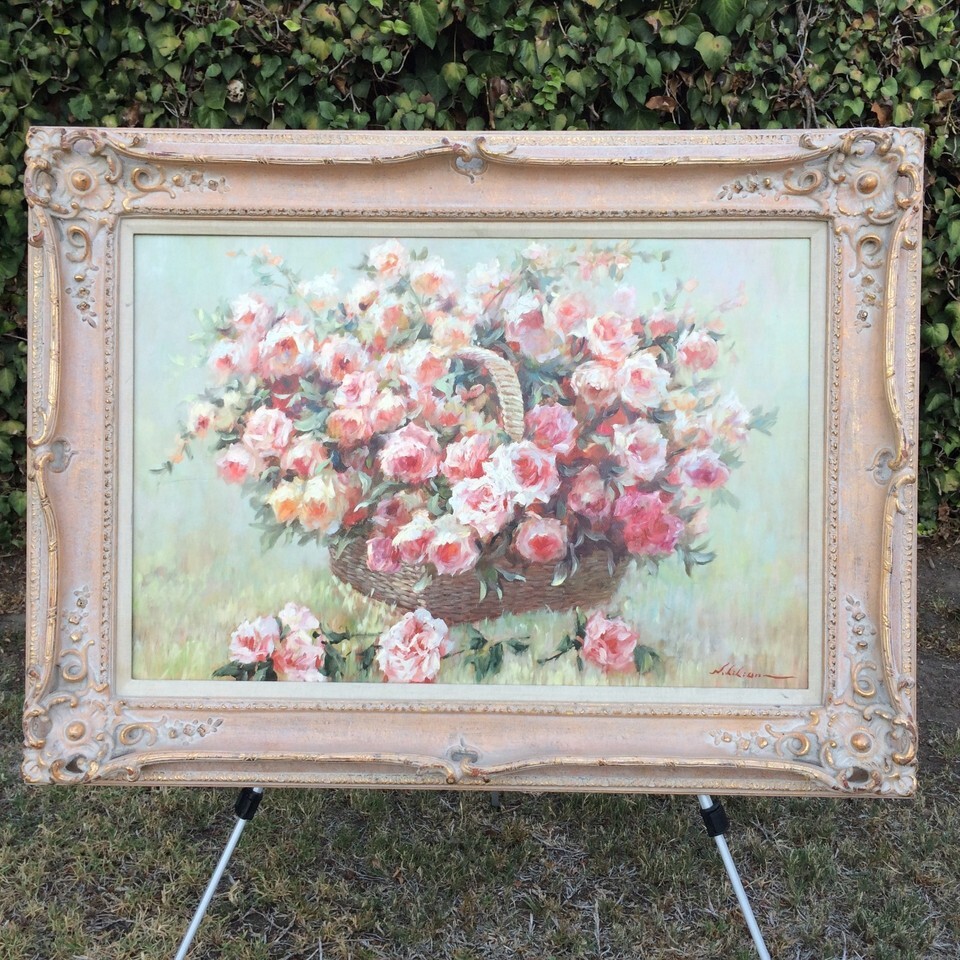 N LILIAN Original 1950s MODERN HUGE IMPRESSIONIST Oil on Canvas with Gesso Frame