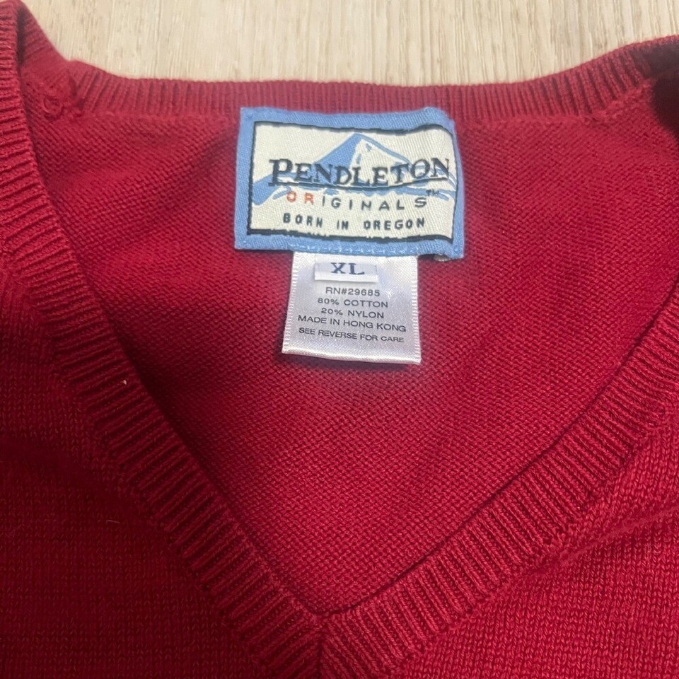 Keywords: Pendleton, sweater vest, knit vest, sleeveless sweater, v-neck vest, red vest, casual vest, layering vest, men's vest, XL vest, preppy vest, vintage vest, classic vest, cotton vest