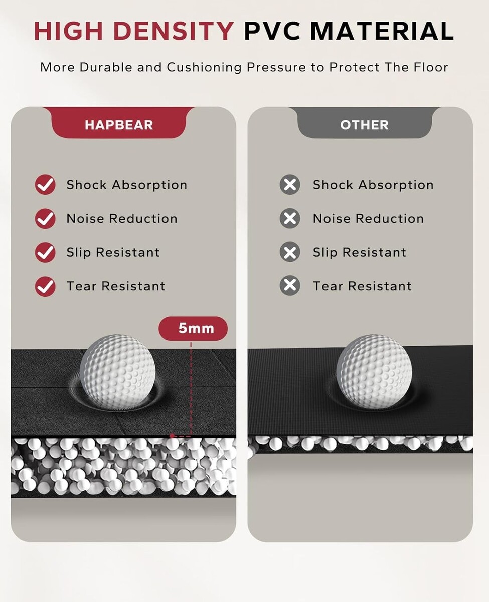 The high-density PVC material offers not only durability but also exceptional shock absorption, allowing you to focus purely on your workout without disruptive noise. It's eco-friendly, waterproof, and simple to maintain, making it a practical choice that aligns with your active lifestyle.