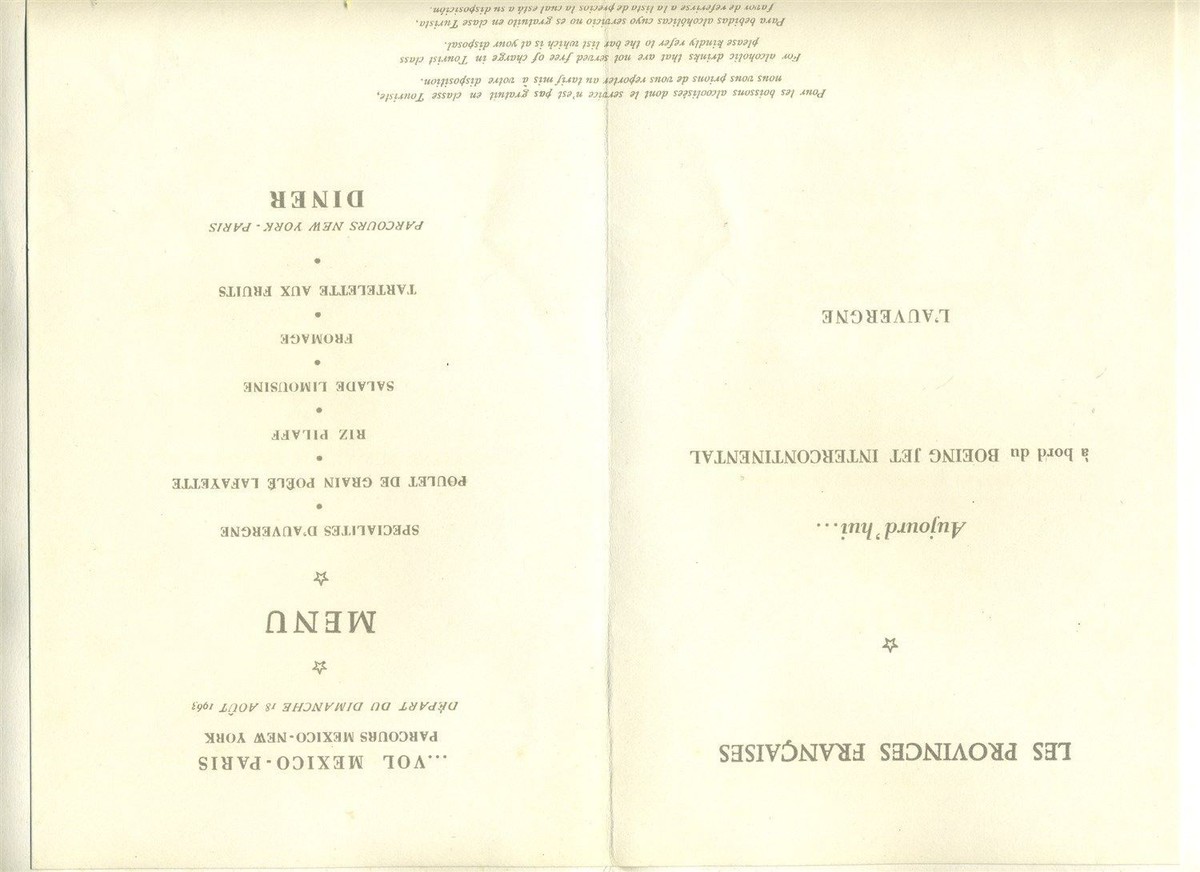 Air France Menu Mexico to JFK New York to Paris 1964 Boeing Jet