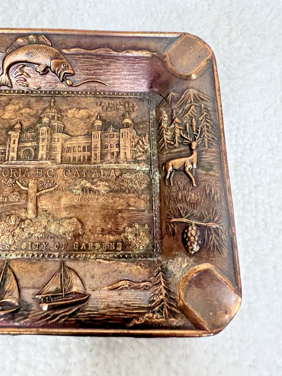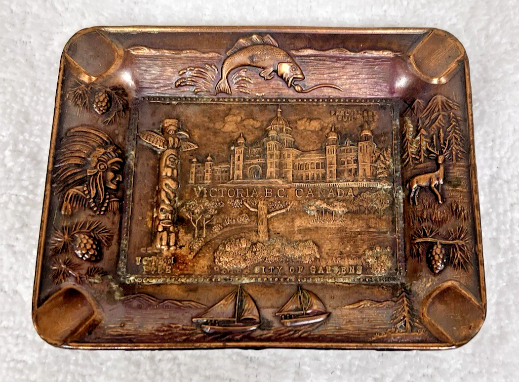 Vicotria BC Canada 1950s Travel Souvenir Ashtray Indian Fish Totem Pole Copper