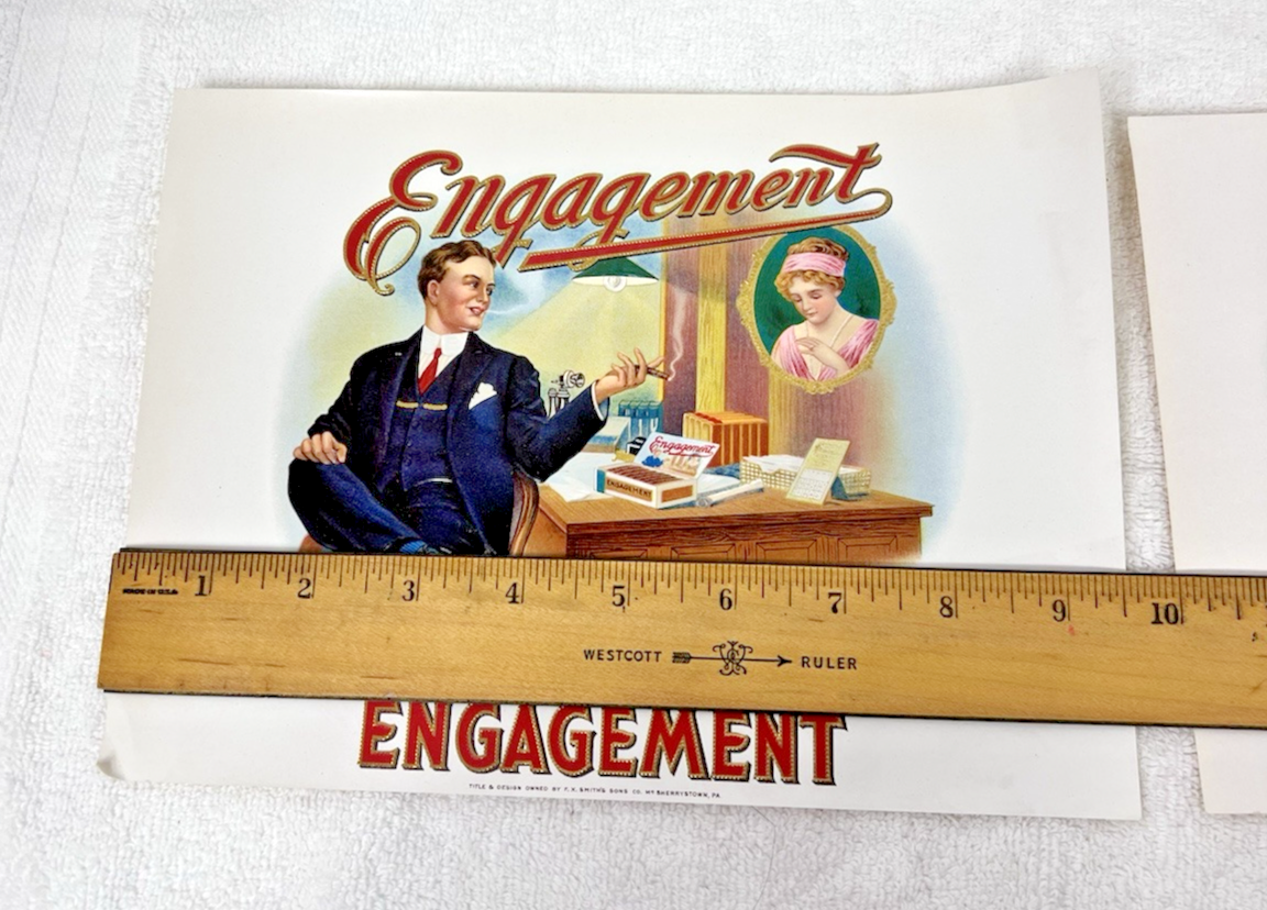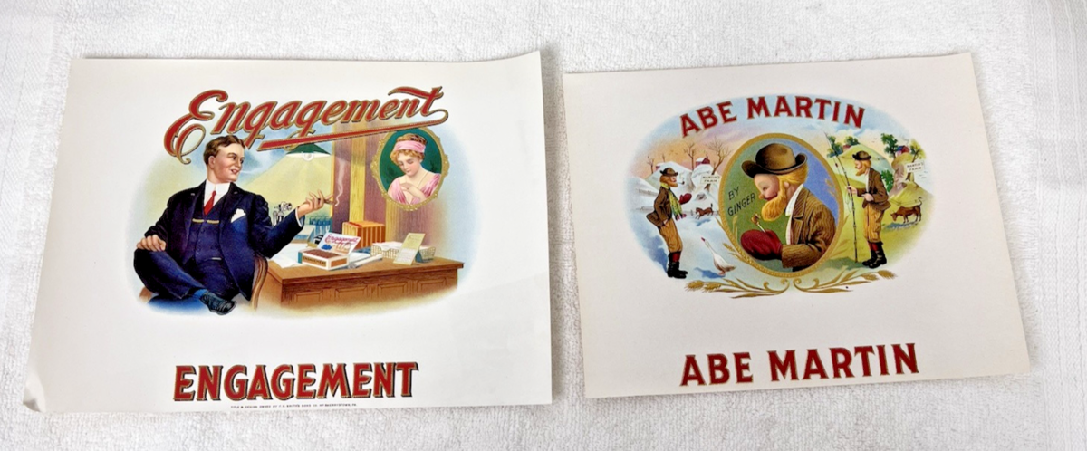 2 Antique Cigar Box Tobacco Labels Abe Martin & Engagement