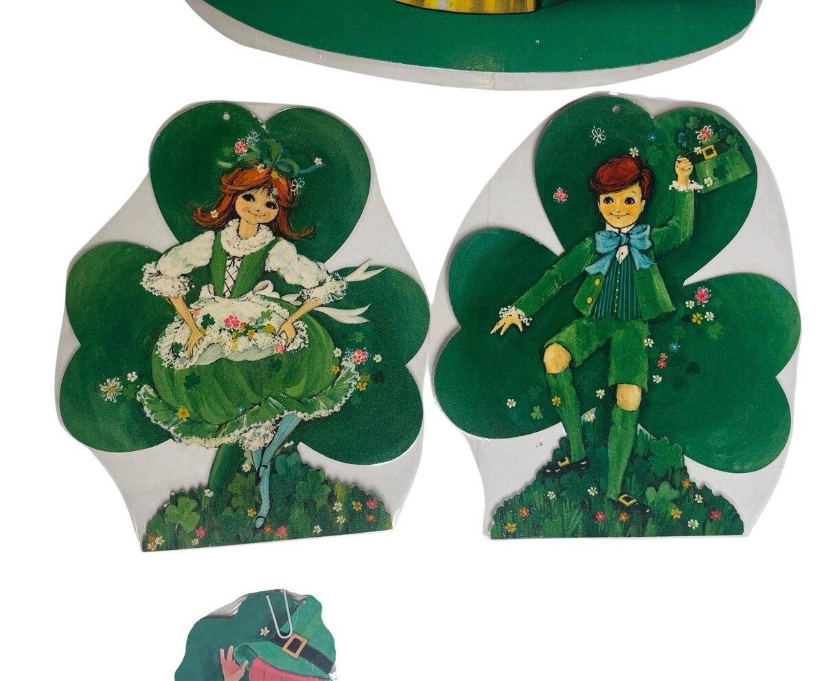 Vtg Cardboard Cut Out Cards St Patricks Day Irish Bulletin Board Decorations Lot