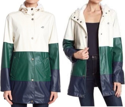 Lucky Brand Women's Green Blue Varsity Colorblock Rain Coat Size Large