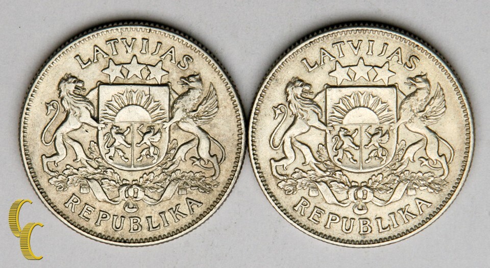 1925-1926 Latvia 2 Lati Silver Coin Lot of 2, KM# 8