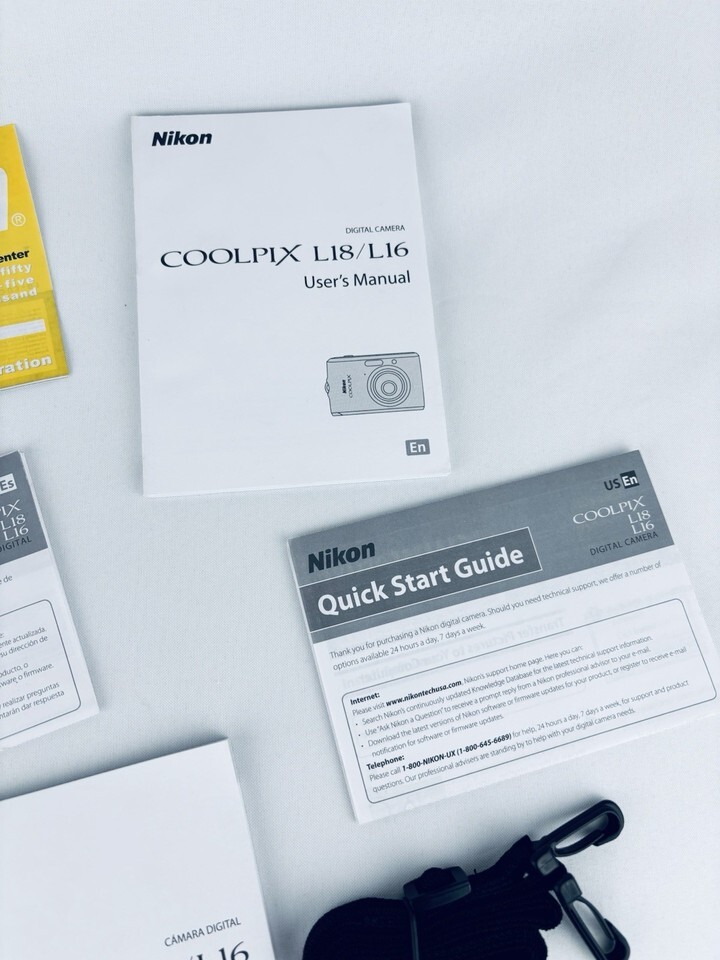 Nikon CoolPix L18 L16 Digital Camera User Guide Manual - Quick Start Strap CD ++