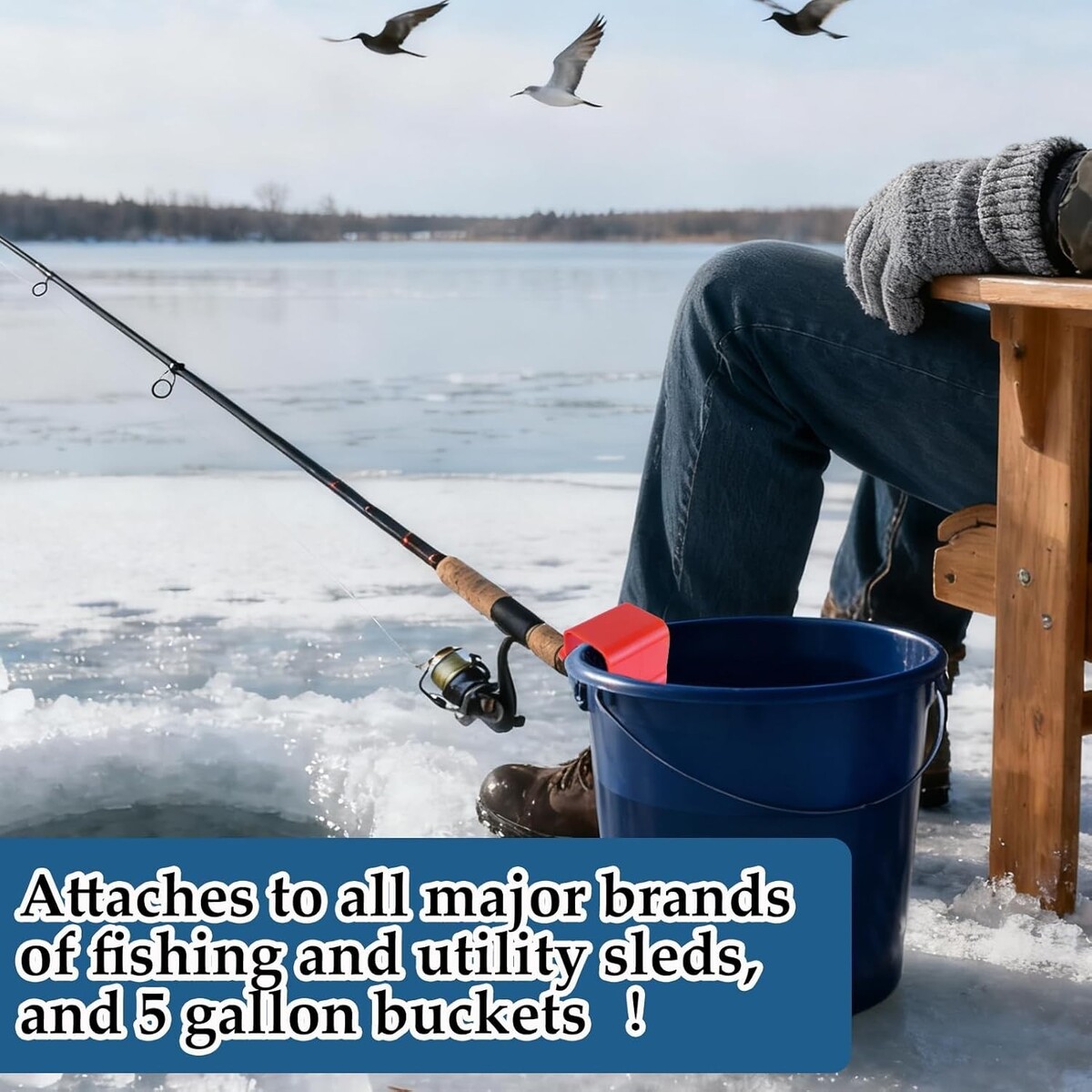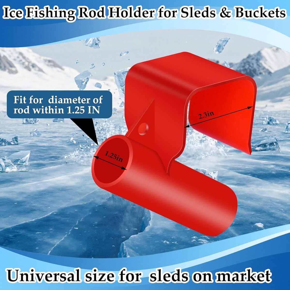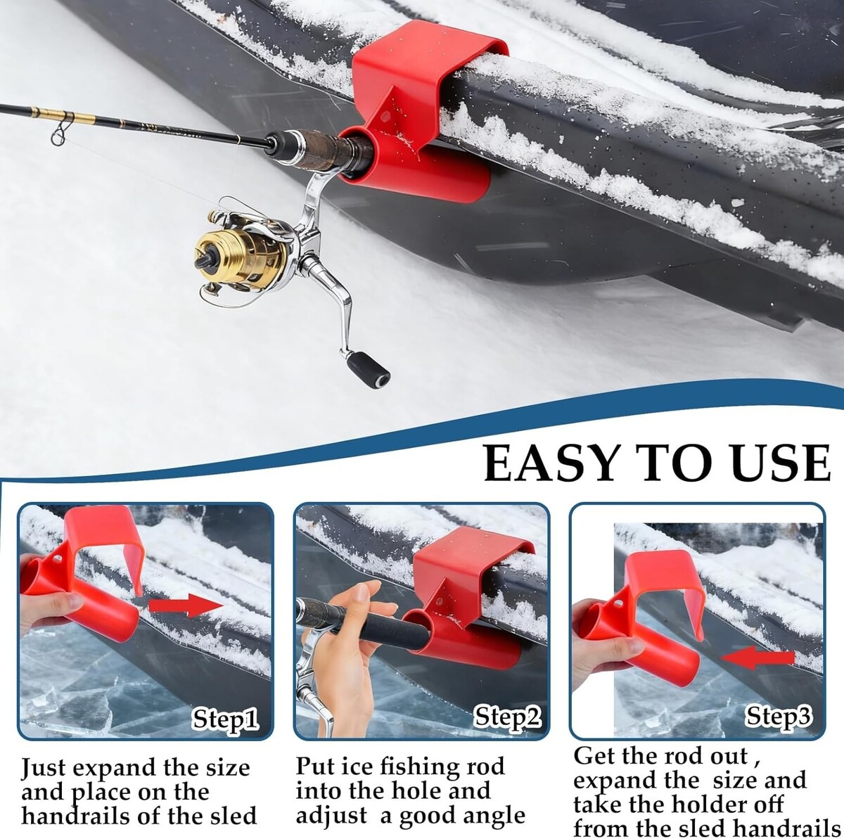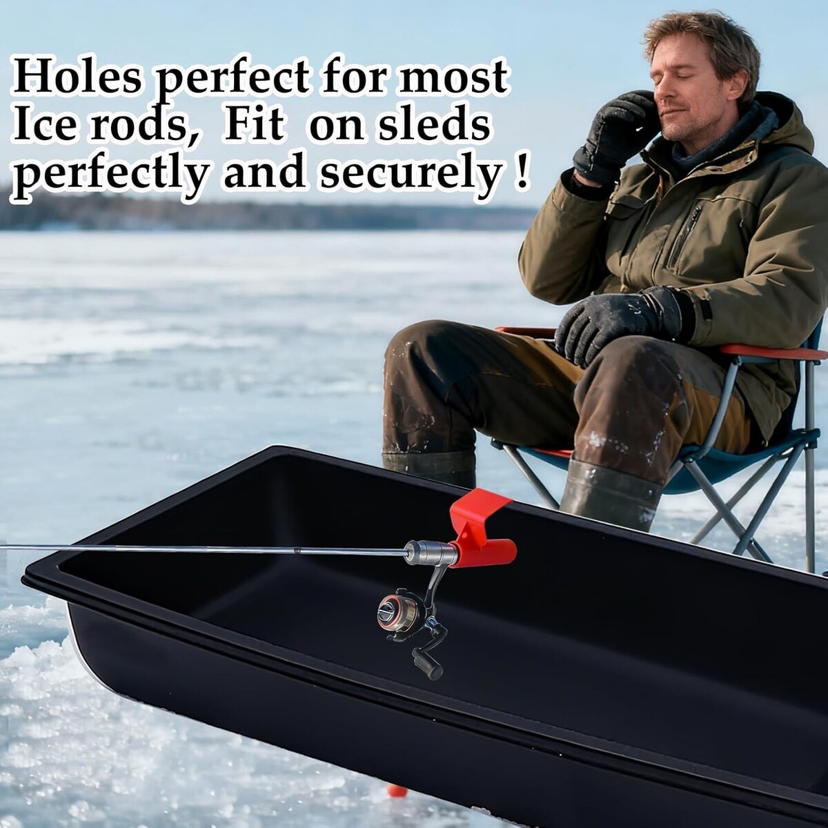 Tool-Free Installation: The snap-on design enables you to install the sled fishing rod bracket quickly and safely within 10 seconds without any screws or tools. Whether you are in a ice house, at the dock or on ice, simply fix it on the upper edge of a 5-gallon bucket or sled and press it down until it is in place to install the ice fishing sled pole. It enables you to quickly complete the setup, without wasting any precious fishing time.