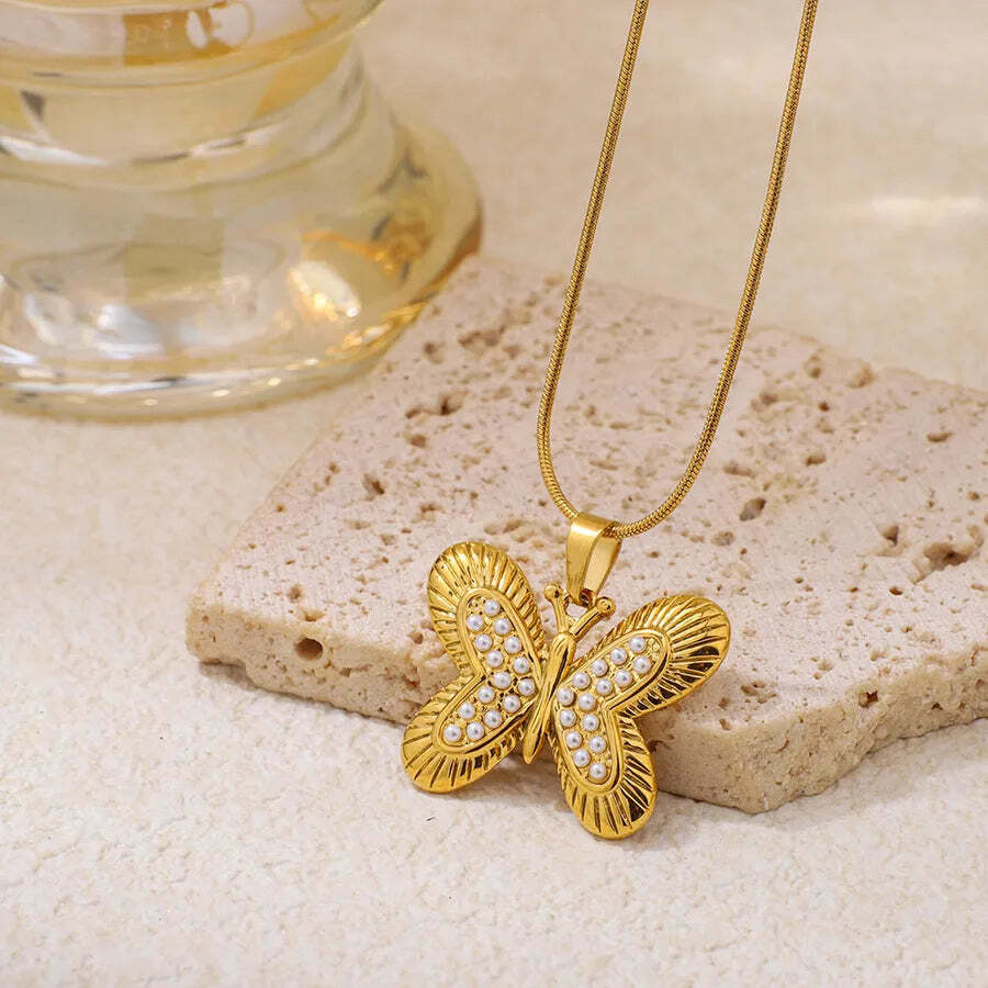 Butterfly Pendant Necklace for Women in 304 Stainless Steel with 18K Gold Plated
