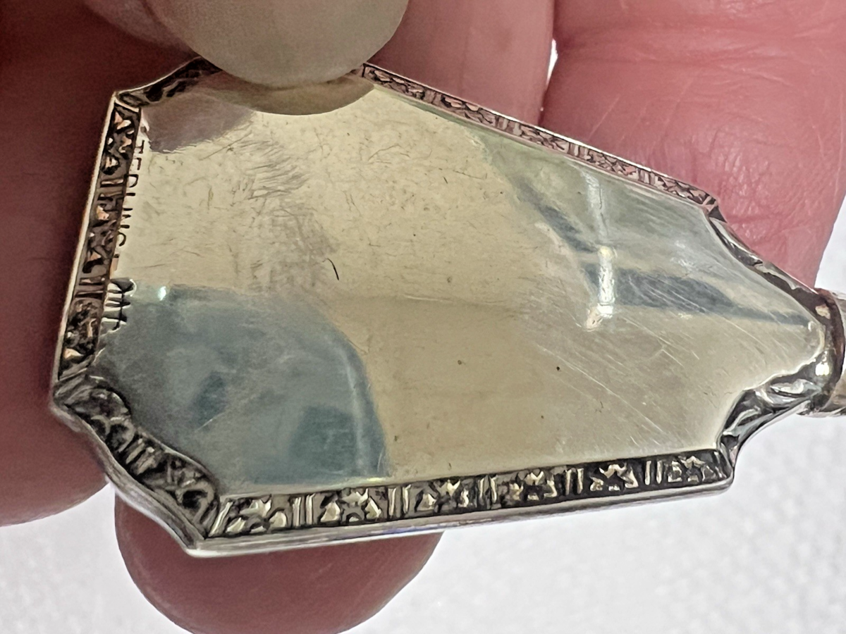 In excellent condition, we will show a picture of the mark that you can only see about half of it. The bottle measures just over 1.5 inch long at the widest is 1 inch wide and it?s just over an 1/8 inch thick in excellent shape. Please see all photos.