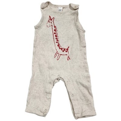Baby Gap Giraffe Ribbed Cotton Overalls Romper 3-6 Sleeveless One-Piece VTG Y2K