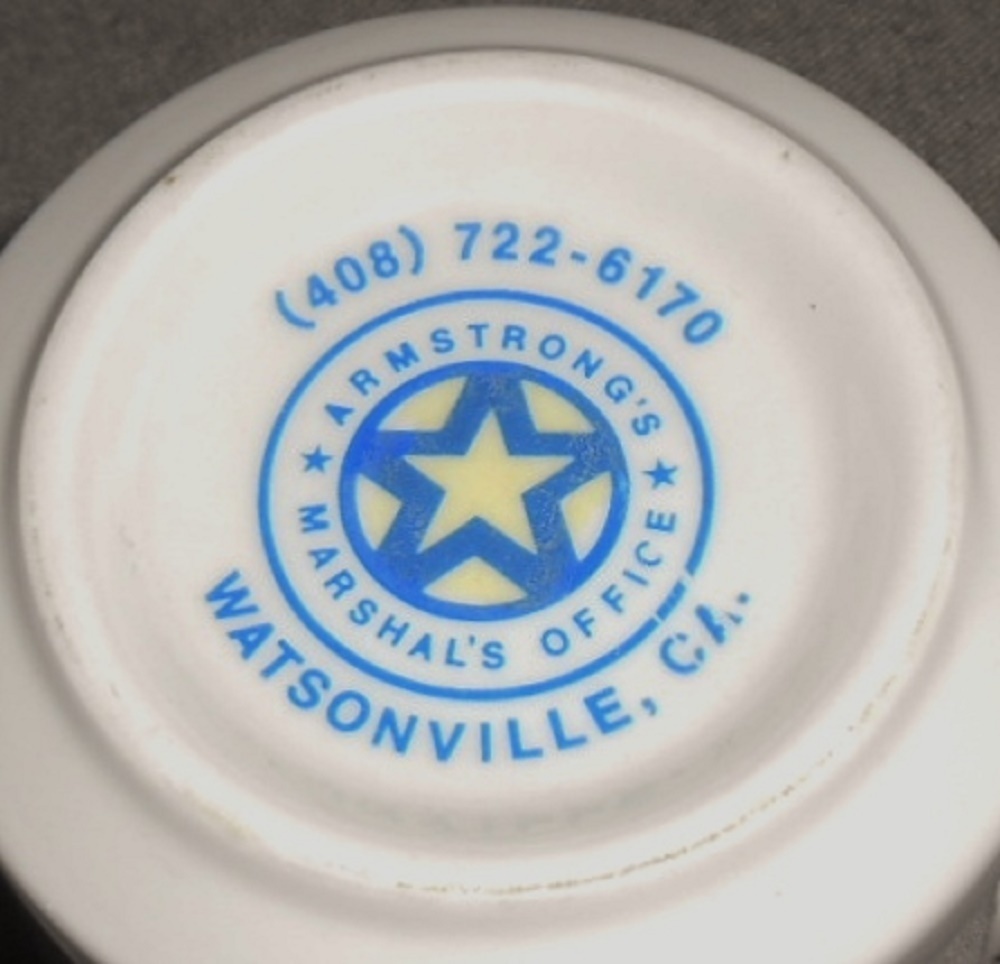 This is a Vintage Handled Mug from maybe 1980s that has the Monterey California Police Department Shield on the front. I have a lot of these from different Police Departments..some are now obsolete - and they were made by a company in Watsonville and also in Freedom California which is close to Watsonville - some are marked and some are not but they are all the same so I think the unmarked ones belong to one or the other company. This one is marked. It measures approx. 3 3/8" tall and is in great pre-owned condition with no chips or damage.(#2)
