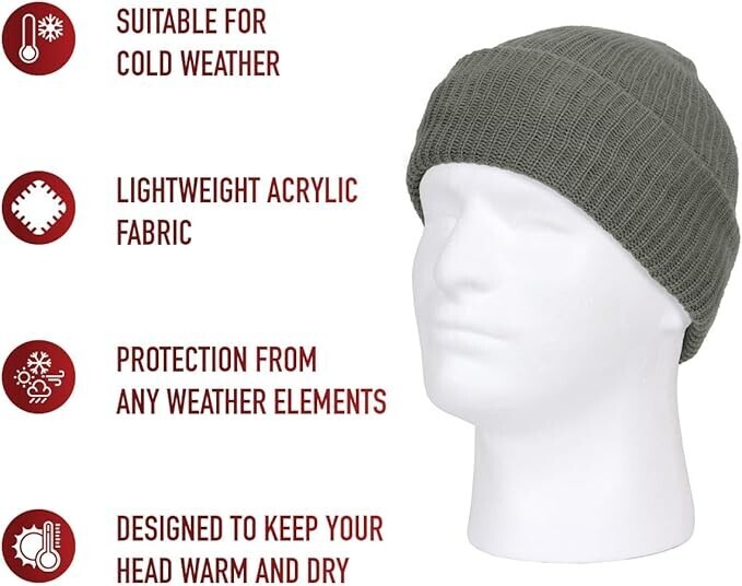 Rothco’s Double-Layer Acrylic Watch Cap Added Warmth Lightweight USA Made OSFM