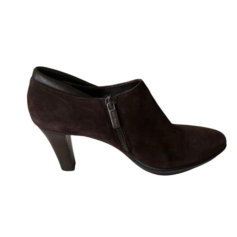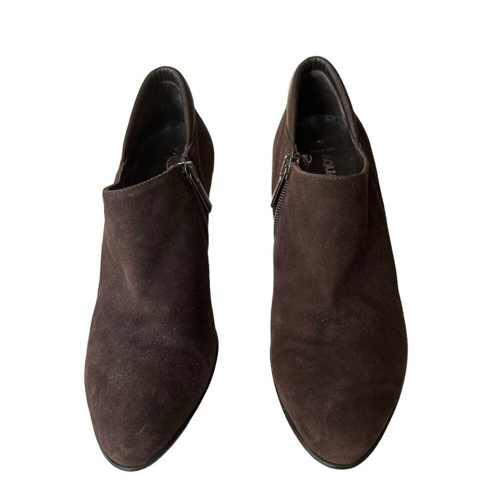 Aquatalia Brown Suede Ankle Booties 3 Inch Heels Side Zip Size 7